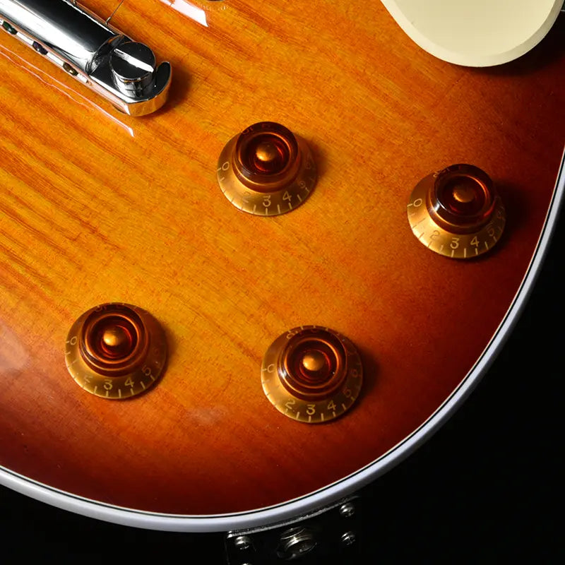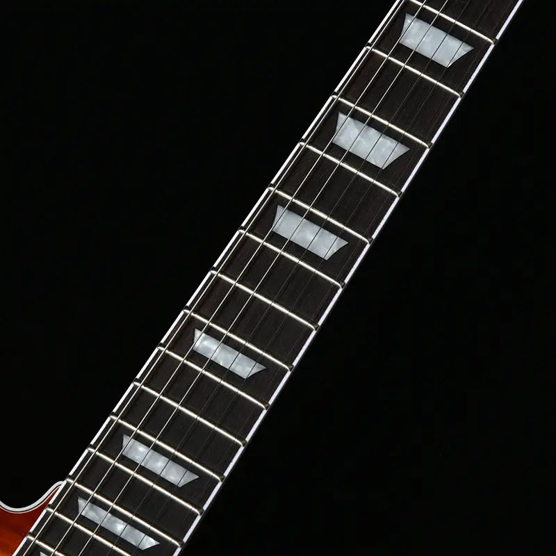 The most distinctive feature of this guitar is its arched body top. Compared to flat-top electric guitars, this arched body top has an iconic look that brings out the grain and color of the top wood more than flat-top electric guitars.