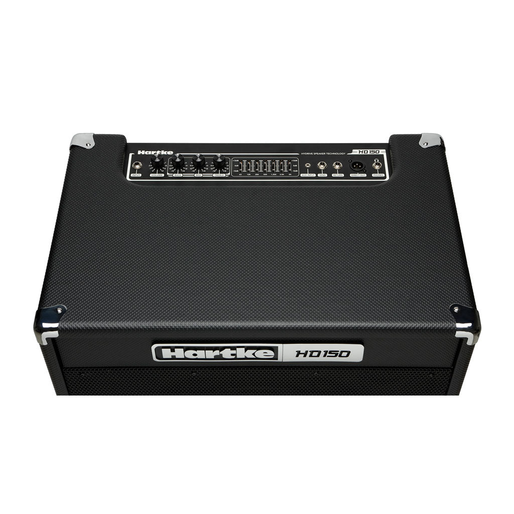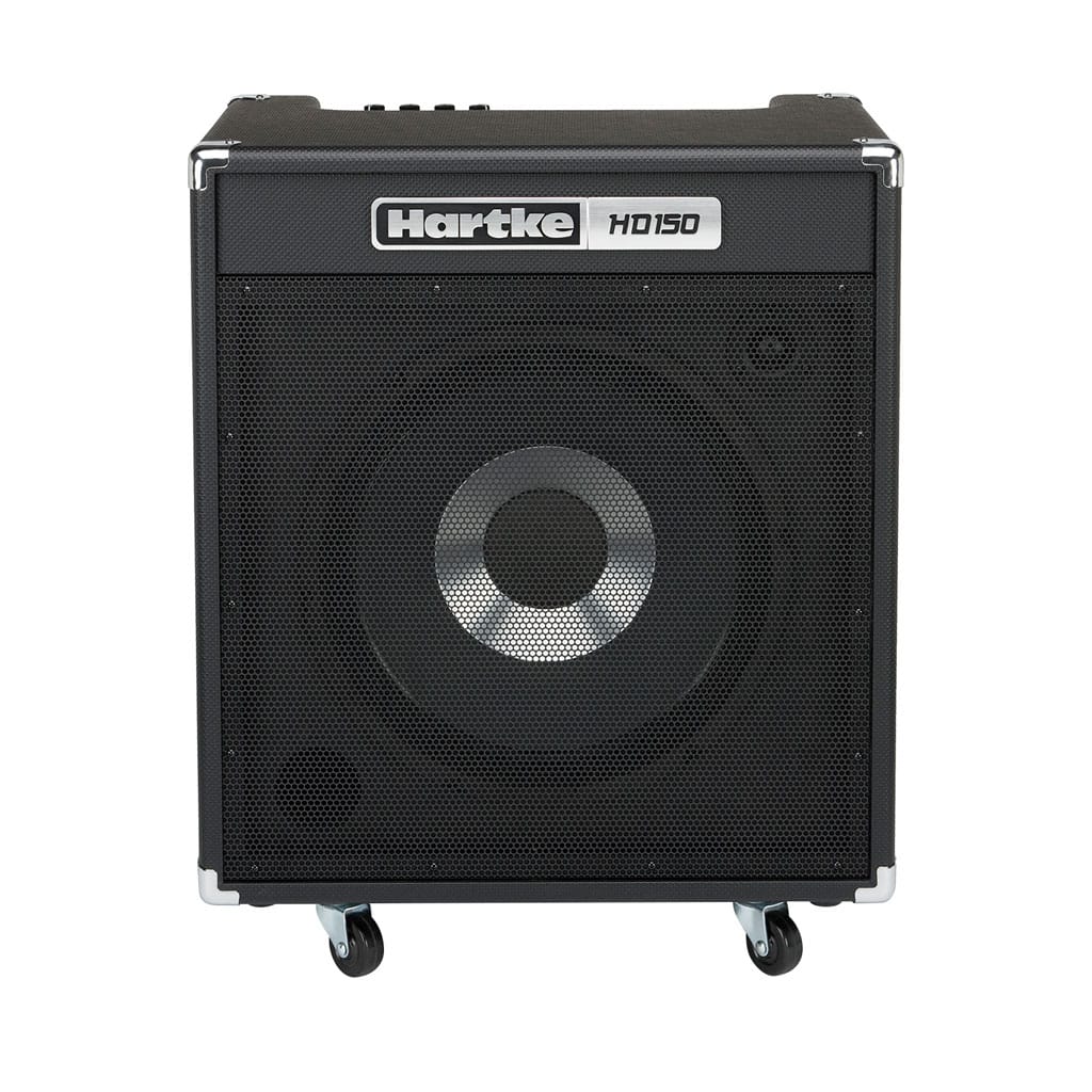 The HD150 (150 watts, 15″ driver, 1″ tweeter) employs Hartke’s patented HyDrive Speaker Technology that offers a carefully crafted hybrid (half paper, half aluminum) cone bass speaker. By combining the warmth and roundness of paper with the punch and attack of aluminum, the HyDrive design produces serious tone that is ideal for bass players of all genres and styles. Packed with professional features, the HD150 combo is designed to be user-friendly and reliable for players of all levels. The combo offers Volume, Bass, Mid and Treble controls on its top-mounted amplifier panel, as well as a 7-band graphic EQ, allowing for easy adjustments. It features a full effects loop, as well as an 1/8″ stereo Aux input for playing along with your favorite tracks via an MP3 player and a 1⁄4″ headphone output for more intimate practice sessions. The HD150 also has an XLR direct output for routing your signal to a mixer in both live and studio settings. In addition, the HD150 has a built-in limiter to ensure constant amp operation at safe levels. Lastly, its solid enclosure is finished in a stylish fashion with a sleek, perforated metal grille, side carry handles and casters.