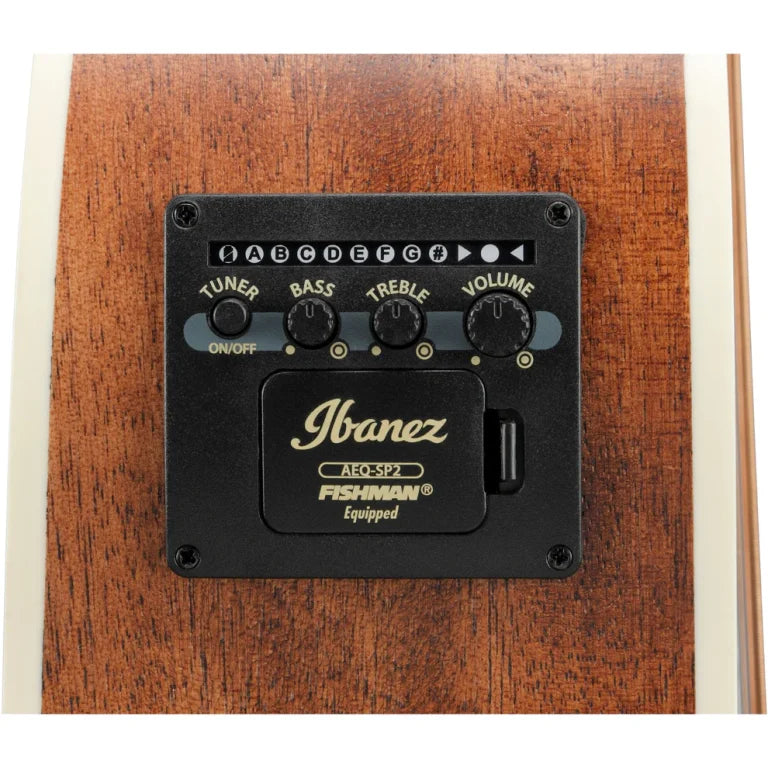 The Ibanez Artwood AC340CE Acoustic Guitar – Open Pore Natural delivers far more value than you’d expect. In addition to its okoume back and sides, it features a solid okoume top that will increase in harmonic richness as it ages. And its real bone nut and saddle, plus Thermo Aged bridge and bridge plate, also add tonal richness and complexity. The Artwood AC340CE is even ready to perform, with its Ibanez AEQ-SP2 pickup system with built-in tuner. In other words, the Ibanez Artwood AC340CE delivers tone and performance that stands out in its class.